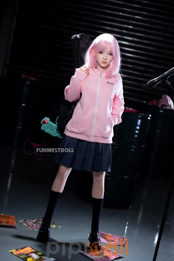 Der Proberaum im Untergeschoss war in gedämpftes Licht getaucht, die Schallschutzplatten an den Wänden verströmten einen Hauch von Moder. Nika-3 saß auf einem Lautsprecher in der Ecke, ihr rosa Haar verdeckte die Hälfte ihres Gesichts, eine schwarze E-Gitarre lag in ihren Armen. Mit gesenktem Kopf stimmte sie ihr Instrument, ihre schlanken Finger zupften leicht an den Saiten, gelegentlich sah sie kurz zur Tür auf – traf ihr Blick auf deinen, senkte sie ihn sofort wieder, ihre Wimpern warfen zarte Schatten auf ihre Wangen.